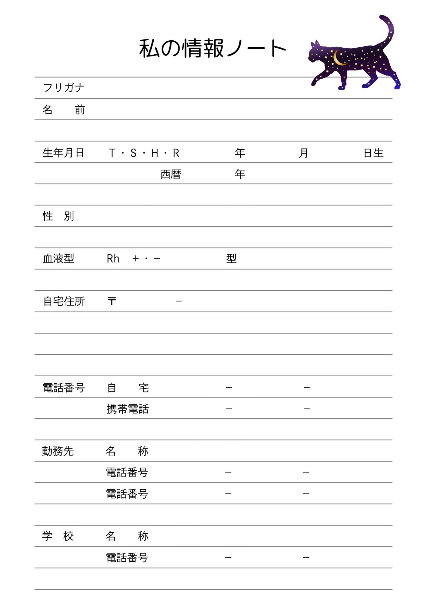 日常の生活でかかせないパーソナル情報をまとめて整理できるノートです。